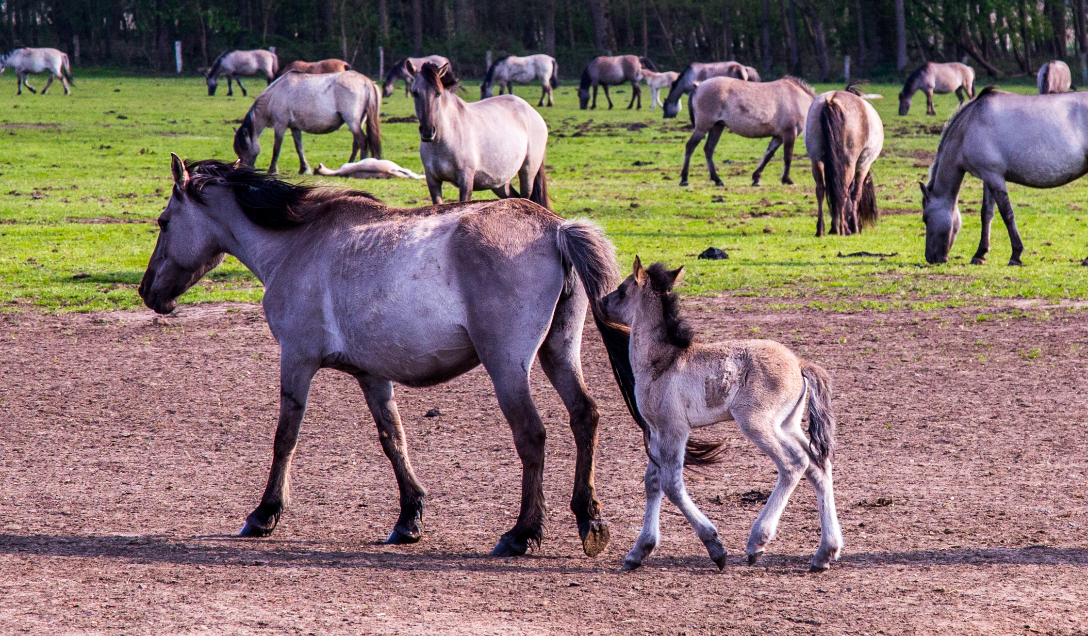 Folen trottet hinter der Mama her.